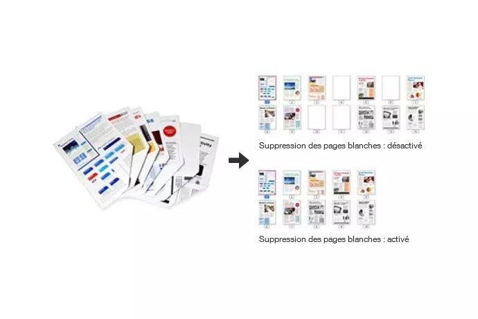 Réduisez les flux de travaux en supprimant automatiquement les pages blanches des documents numérisés.