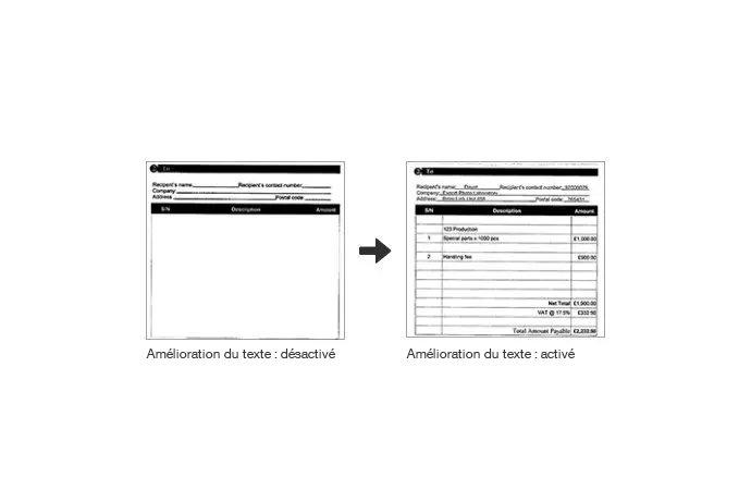 La fonctionnalité d’amélioration du texte optimise la netteté du texte lors de la numérisation des documents.