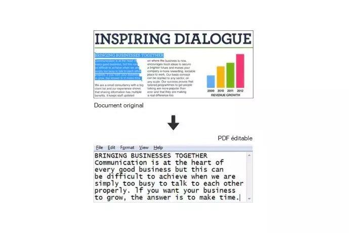 Le logiciel OCR intégré permet de numériser des documents et de générer des fichiers PDF éditables.