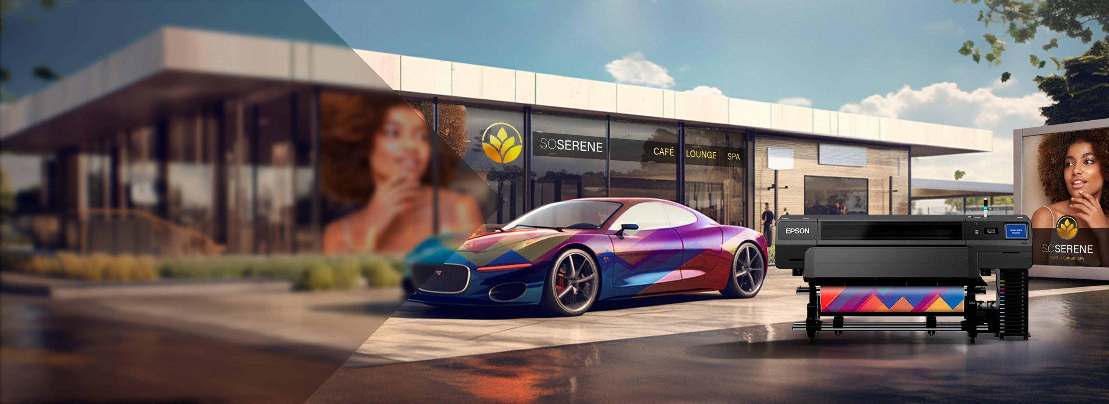 Les imprimantes de la série SC-R d’Epson peuvent imprimer sur un certain nombre de matériaux, notamment le vinyle, le papier peint, les bannières, les habillages de véhicules, les revêtements muraux, les films et les textiles.